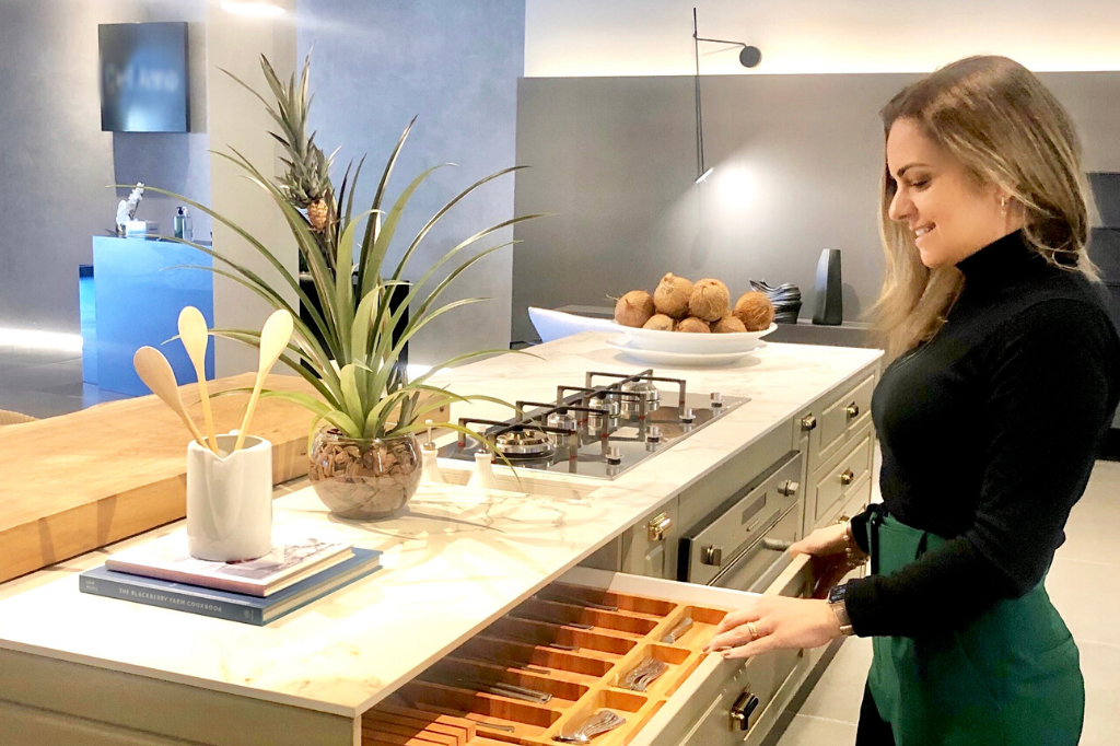 Prezo muito o estilo de vida de cada cliente. É preciso entender como o espaço vai ser usado para que ele funcione bem. Depois priorizo a funcionalidade e ergonomia. Dentro desses critérios, aplico as tendências em projetos e design de acordo com a personalidade dos clientes.